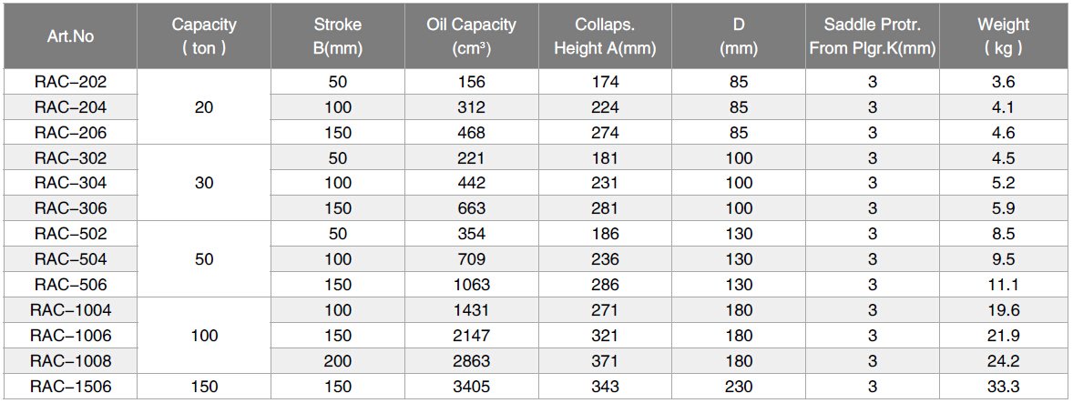 RAC series Single-acting Aluminium Hydraulic Cylin