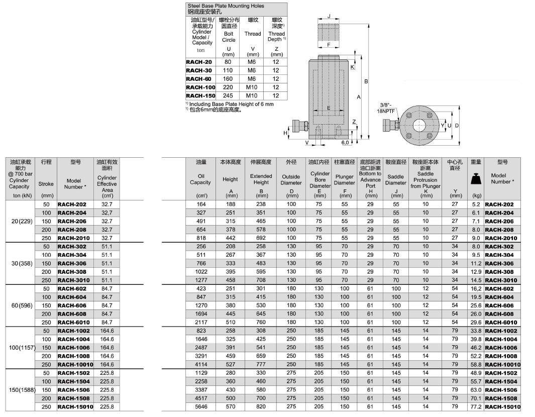 RACH, Aluminium Hollow Plunger Cylinders