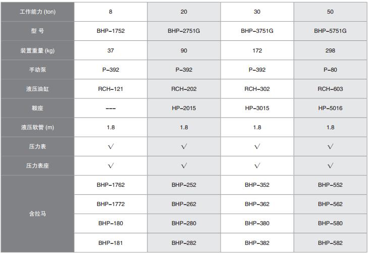 3.套装拉马含手动泵、液压软管、压力表表座。