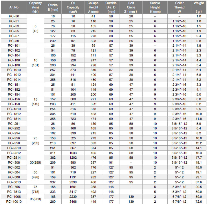 RC Series Single Acting Hydraulic Cylinders
